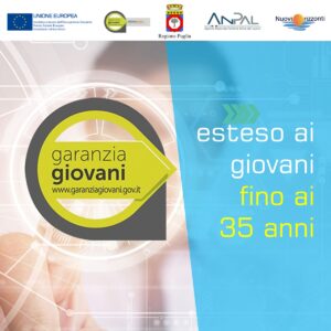 Esteso dalla Regione Puglia il target per l’adesione al Programma “Garanzia Giovani”! Il programma è promosso dalla comunità Europea, dall’ANPAL e dalla Regione Puglia e adesso è rivolto anche a giovani disoccupati (anche se studenti) di età compresa tra i 30 e i 35 anni.